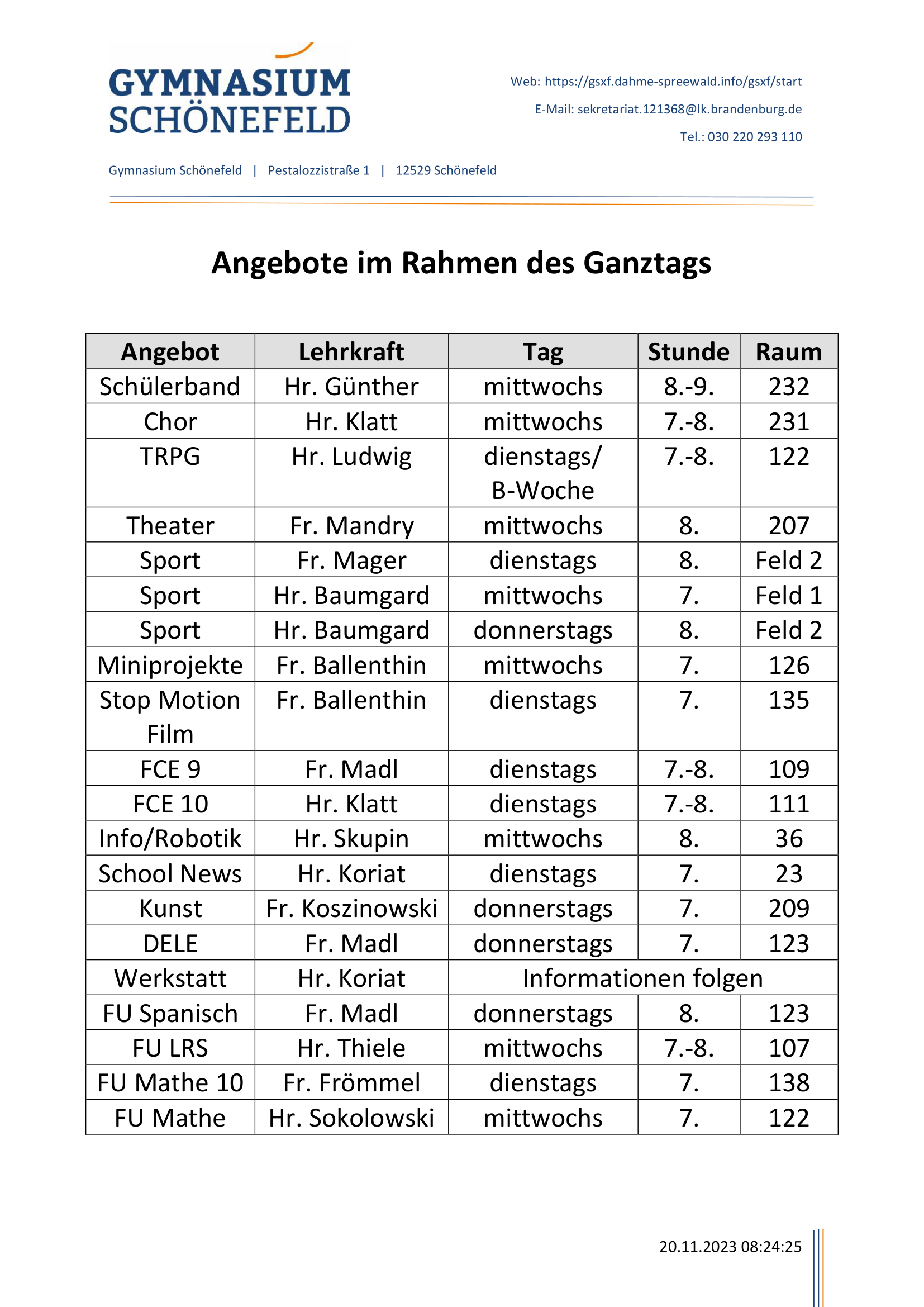 Arbeitsgemeinschaften (AGs) und Förderangebote (FUs)